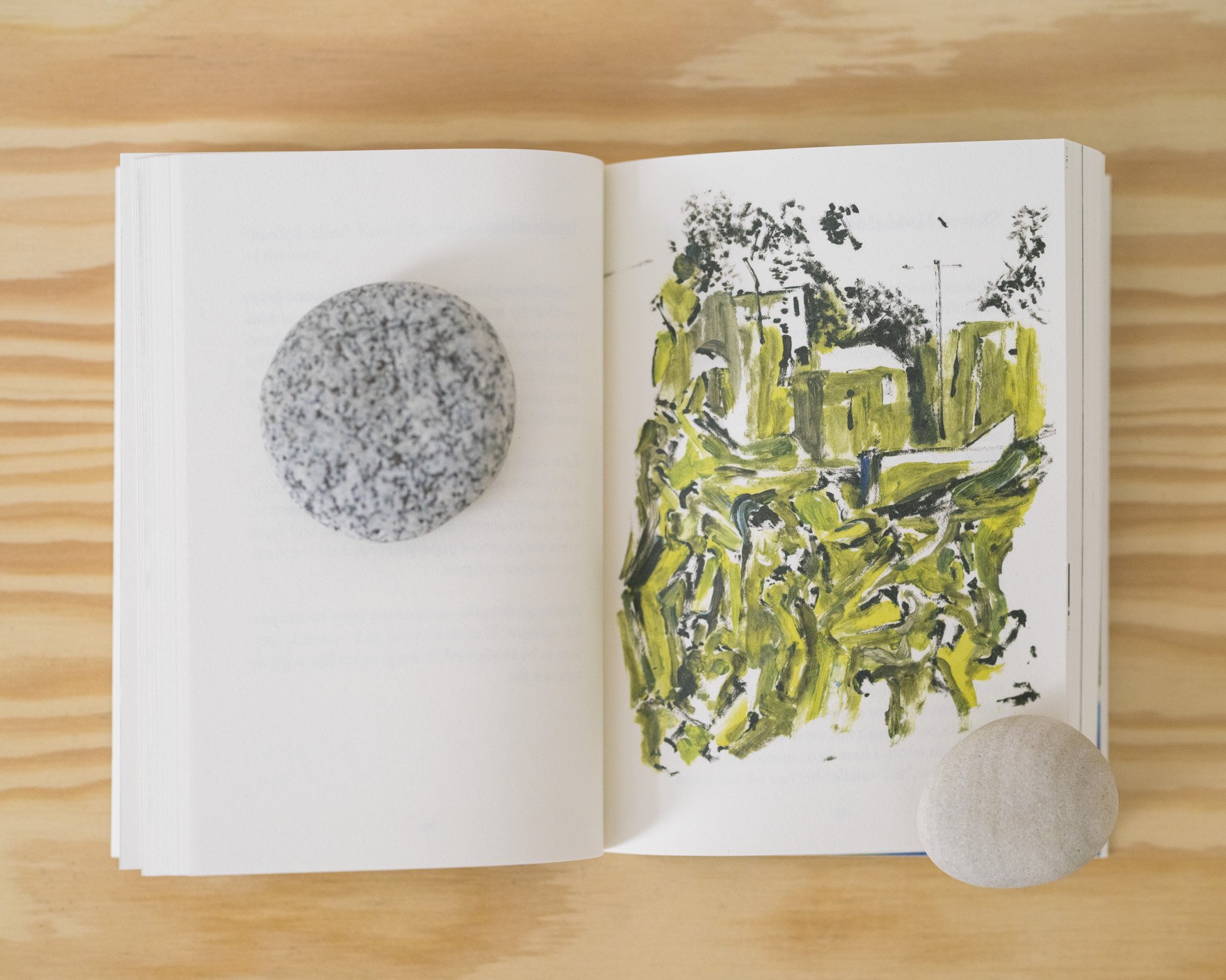 Demanding the Room is illustrated with drawings and paintings by artist Mark He, who has a knack for conveying through the visual: the frizzle of powerlines strung haphazardly; the perpetual stretching of vines repossessing buildings; the push of water eternal.