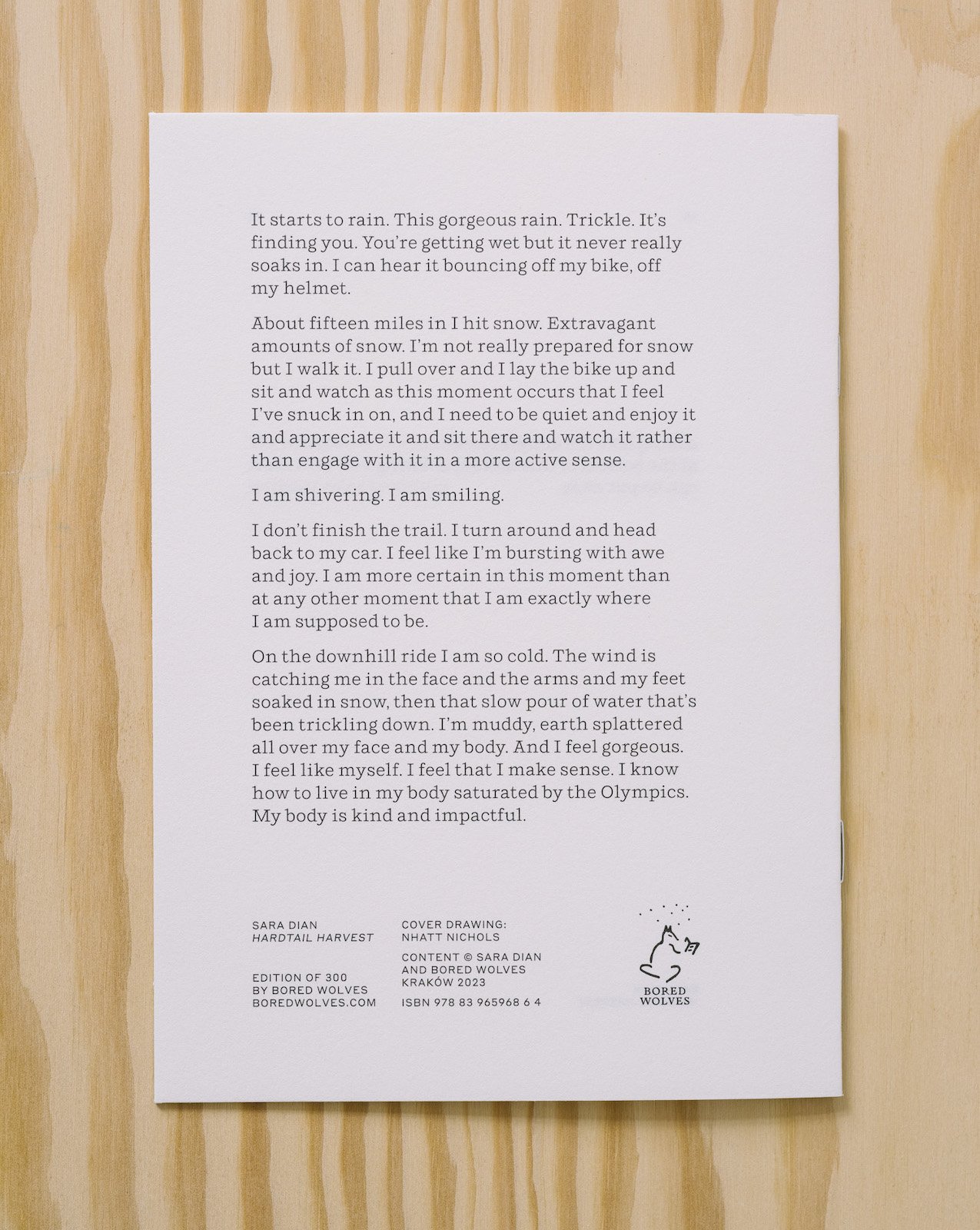 This 16-page poem-zine by Sara Dian ends up caked under the fingernails of a day that ranges from Pacific Northwest mountain bike trails to corporeal epiphanies misted with the spritz from a freshly pop-topped can of beer.