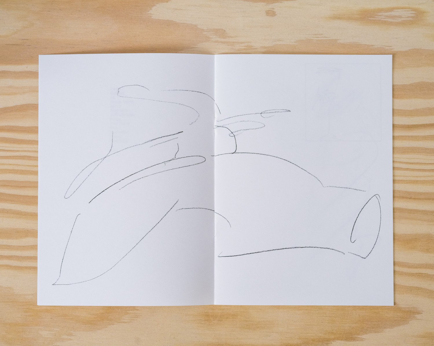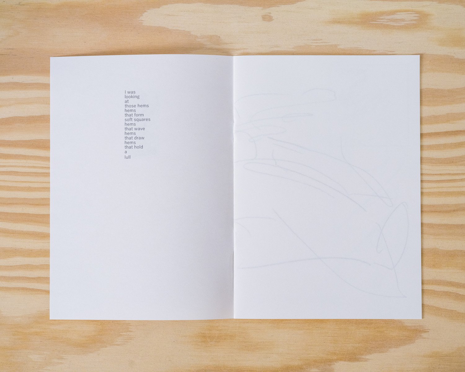 Hem is a 16-page photocopy zine composed of artist Misa Asanuma’s studies of the suspension and flow of Noh actors and their rippling costumes.