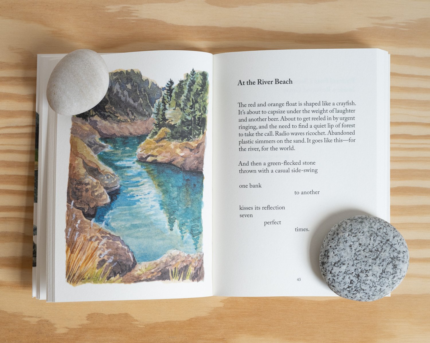 Serpentine is poet Tara K. Shepersky’s topography of the California that raised and sustains her, landmarked by sites of homecoming and haven: a sinuous verdigris river triangulates with coastal tide scooping out pools of curiosity and mountains backing her up like deep-rooted friends. Equally at home on these shared shores, artist Lucy Bellwood unsaddles easel, cups the colors of water, and composes beckoning landscapes recalling glass plate negatives, here cushioned for the bare-soled wanderer’s return.