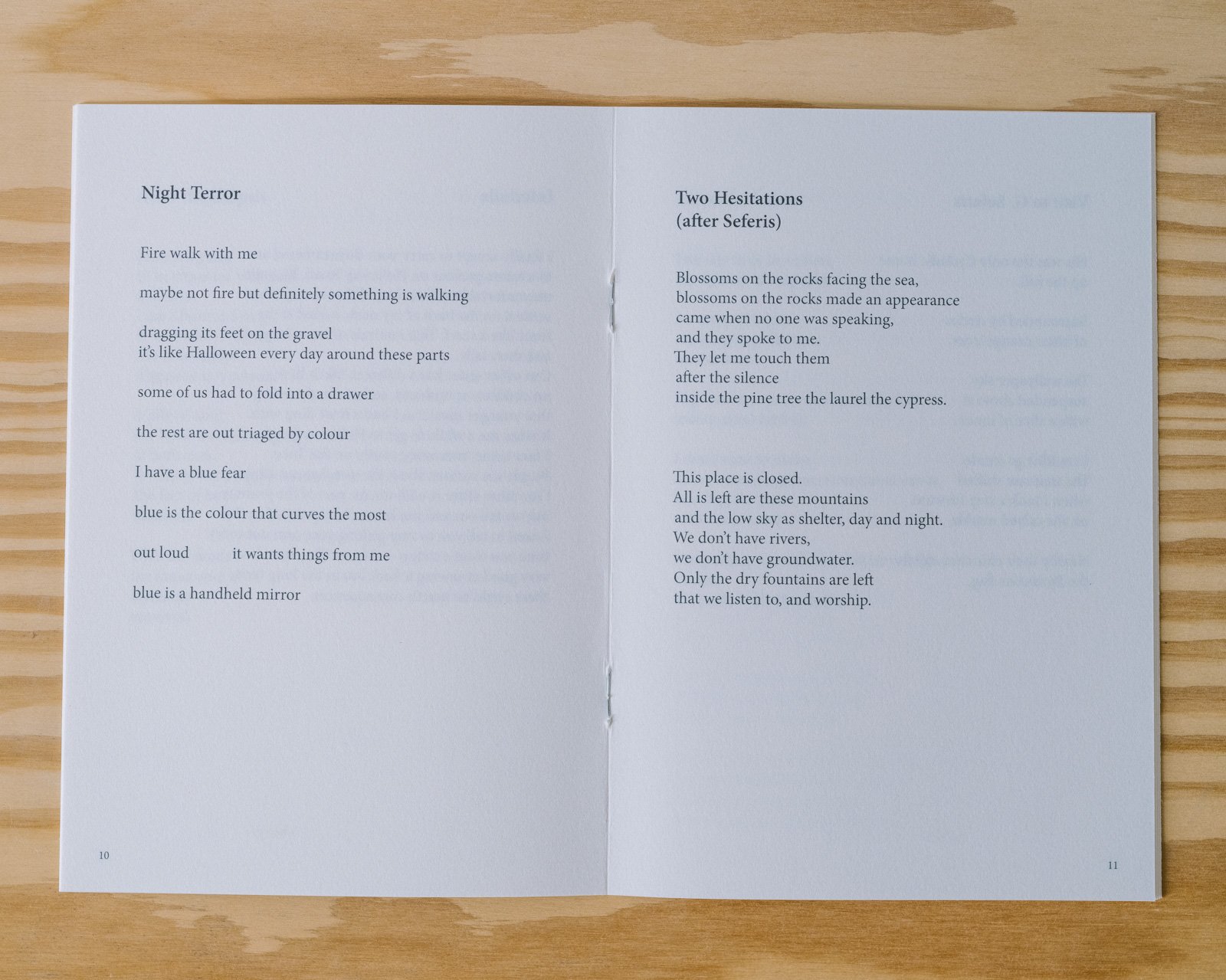 In her poem-zine Vestibular Training, the Italian-Greek poet Alex Keramidas evokes Grecian scenes that, whether desired or not, become frictional palimpsests of past trauma extending back to disrupted infancy, ballasted by present-day emergence in settings that hold forth the promise of solace.